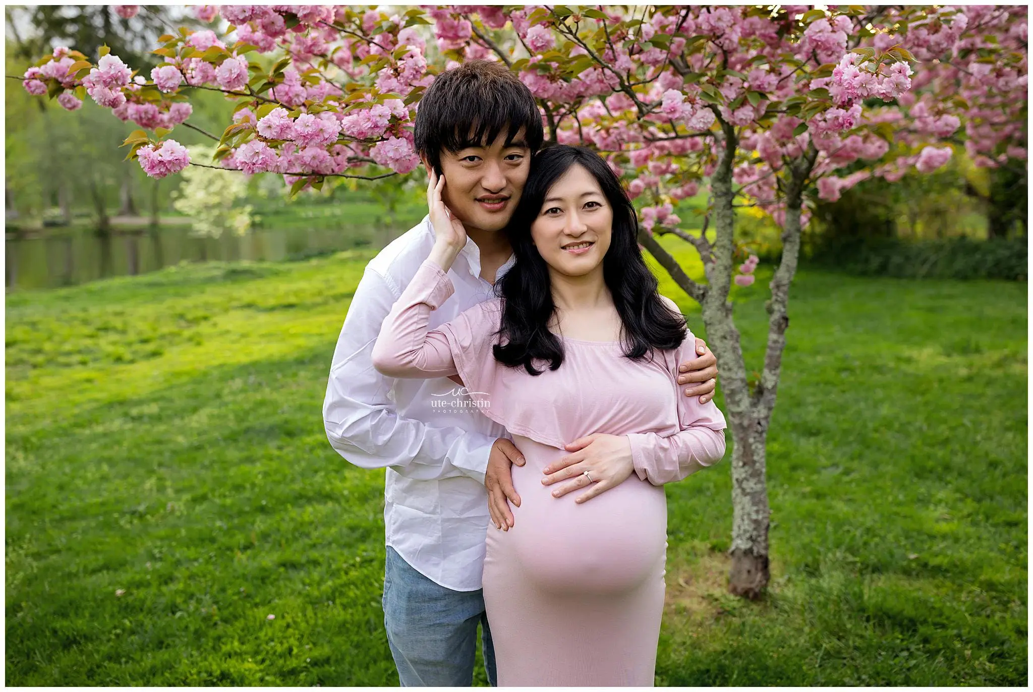 The J Family | Cherry Blossom Spring Maternity Photography Session | Katonah, NY