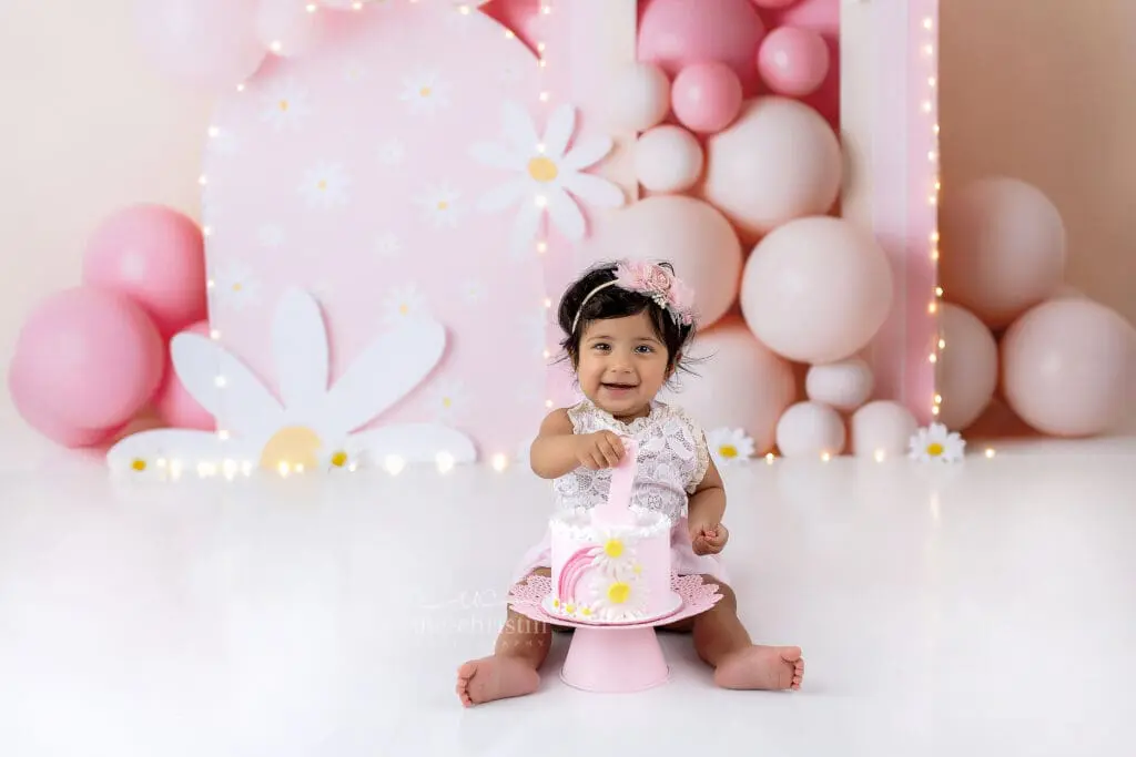 The first-year collection is incomplete without a cake smash photoshoot for the baby’s first birthday. Pre-birthday-themed shots, such as those taken right before the actual day of celebration, feature a baby and an enticing cake. Picking out your cake smash theme is so much fun and the options are endless. Your baby is dressed in a matching outfit and engages with the cake to their contentment; licking frosting, scooping up handfuls of cake, or even diving headfirst into the cake. The joy and the exaggeration of the images themselves are fantastic. Often during cake smashes we experience tears, but the photographs will showcase all the emotions!