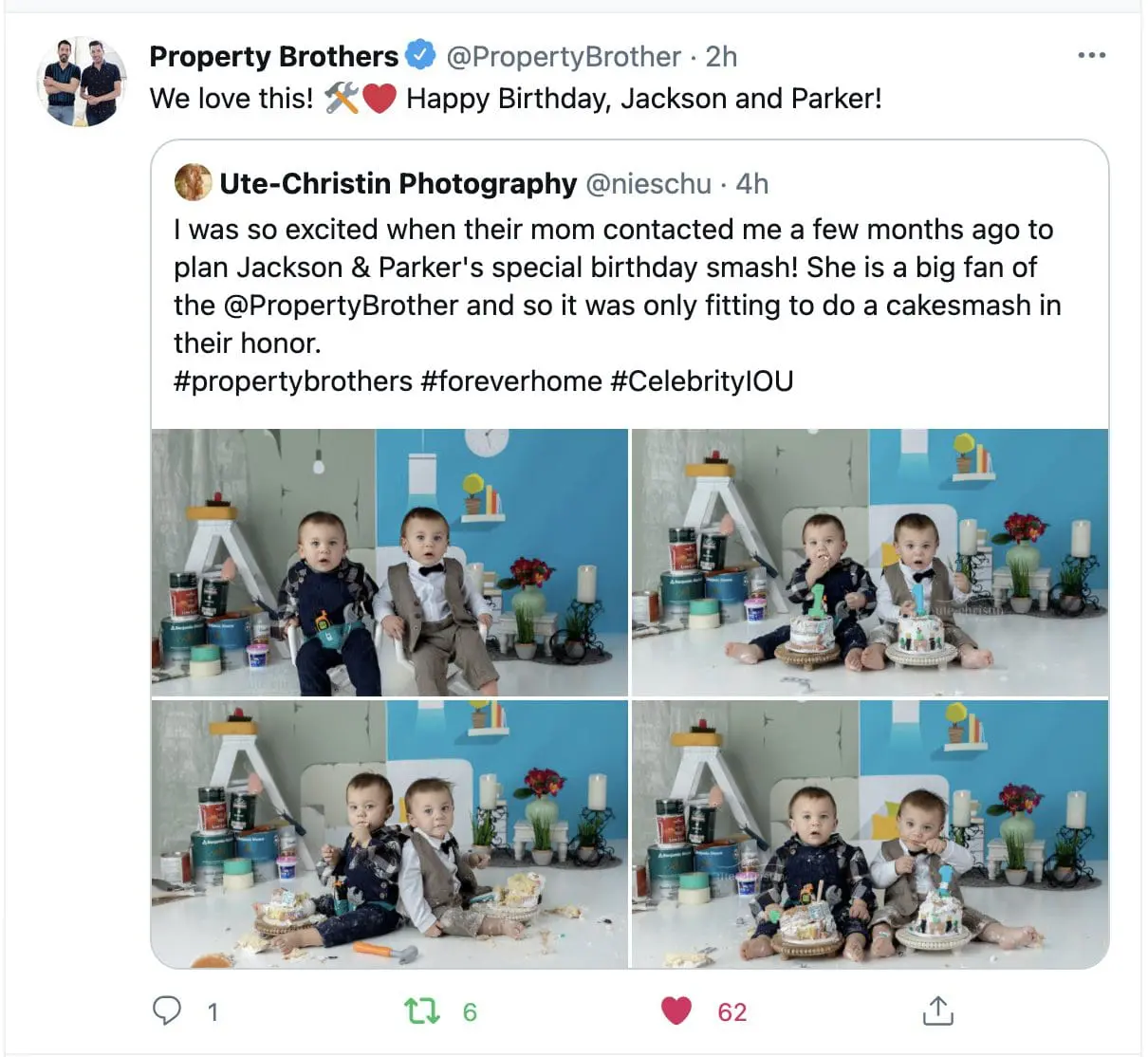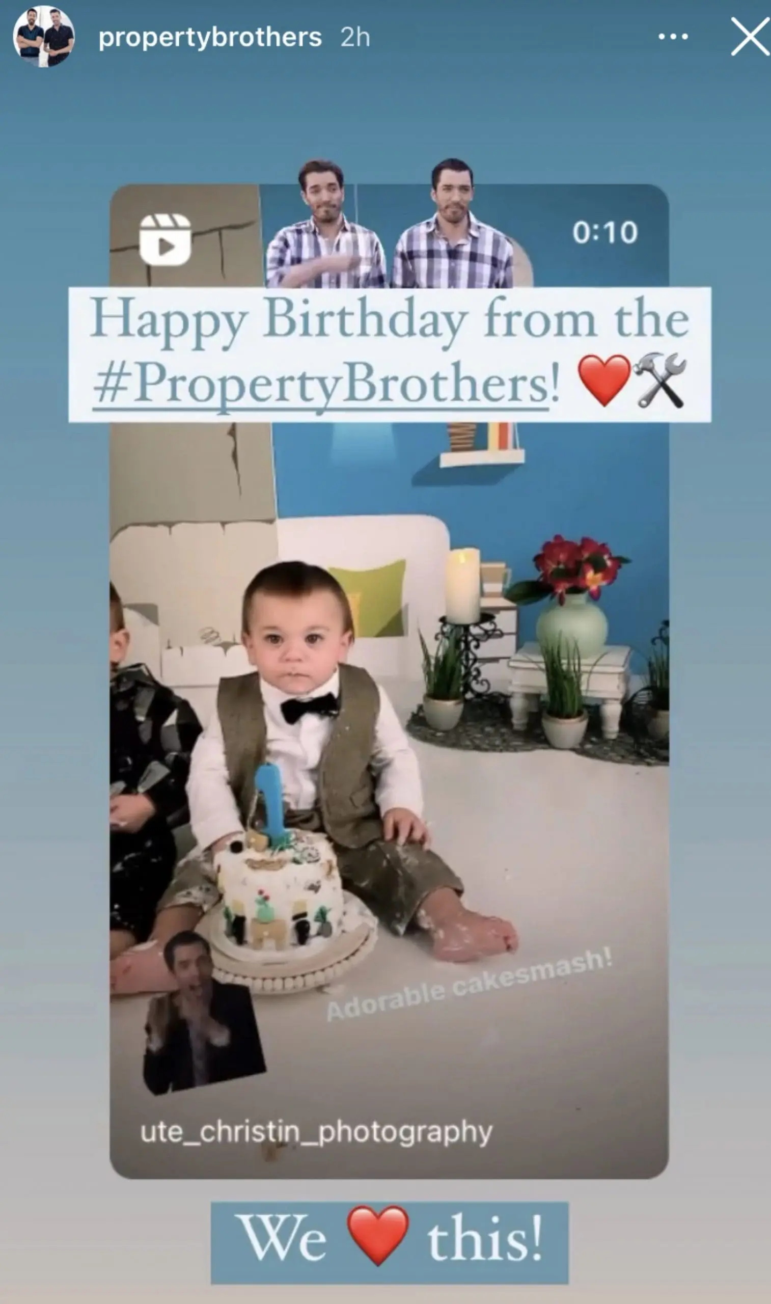 I couldn’t have been more excited when their mom reached out to tell me about her cakesmash idea for those adorable twins I photographed since they were born! The Property Brother theme was more than fitting for those identical twins! It took a few months of planning out the cakesmash but I immediately knew I wanted to do a split-screen to showcase the before and after, just like on the show. I purchased a graphic I liked online and modified it to fit my needs. Then I used this backdrop company to custom print the backdrop for the setup. Now I just had to plan out the setups and outfits! The planning phase is always my favorite because I love being creative and coming up with some fun ideas! I love watching the Property Brothers on HGTV so this was an absolute blast! A big shoutout to my friend Jade and her amazing cakes she really outdid herself for those!